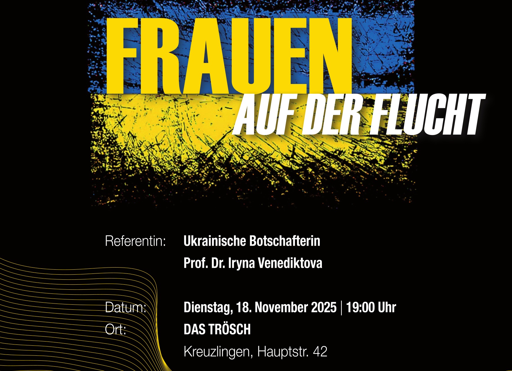Seit bald vier Jahren sind viele ukrainische Frauen, oft mit ihren Kindern, innerhalb der Ukraine oder in Europa auf der Flucht vor dem Krieg. Umrahmt wird der Abend durch den ukrainischen Chor «Perlyna» unter der Leitung von Olena Roschkowa sowie von der Bandura-Spielerin Oksana Kotschedikowa. Anschliessend traditionelles Brotbrechen.