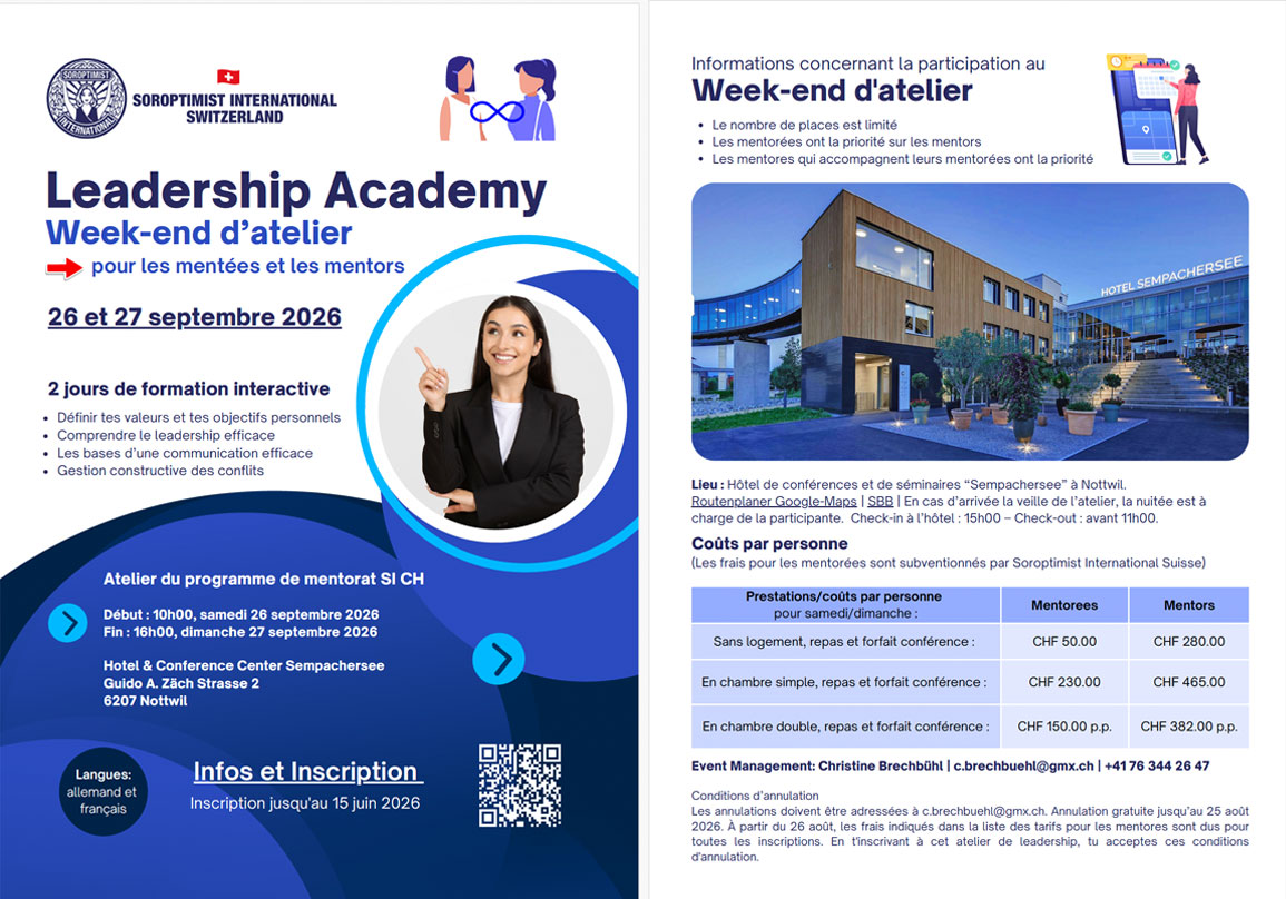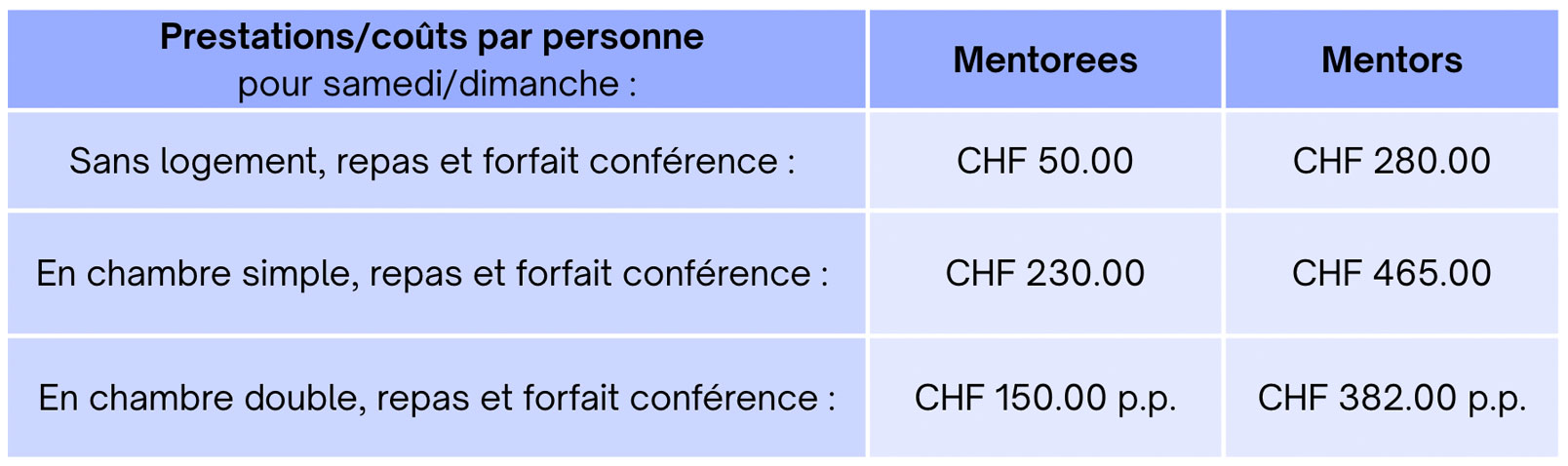 (Les frais pour les mentorées sont subventionnés par Soroptimist International Suisse)