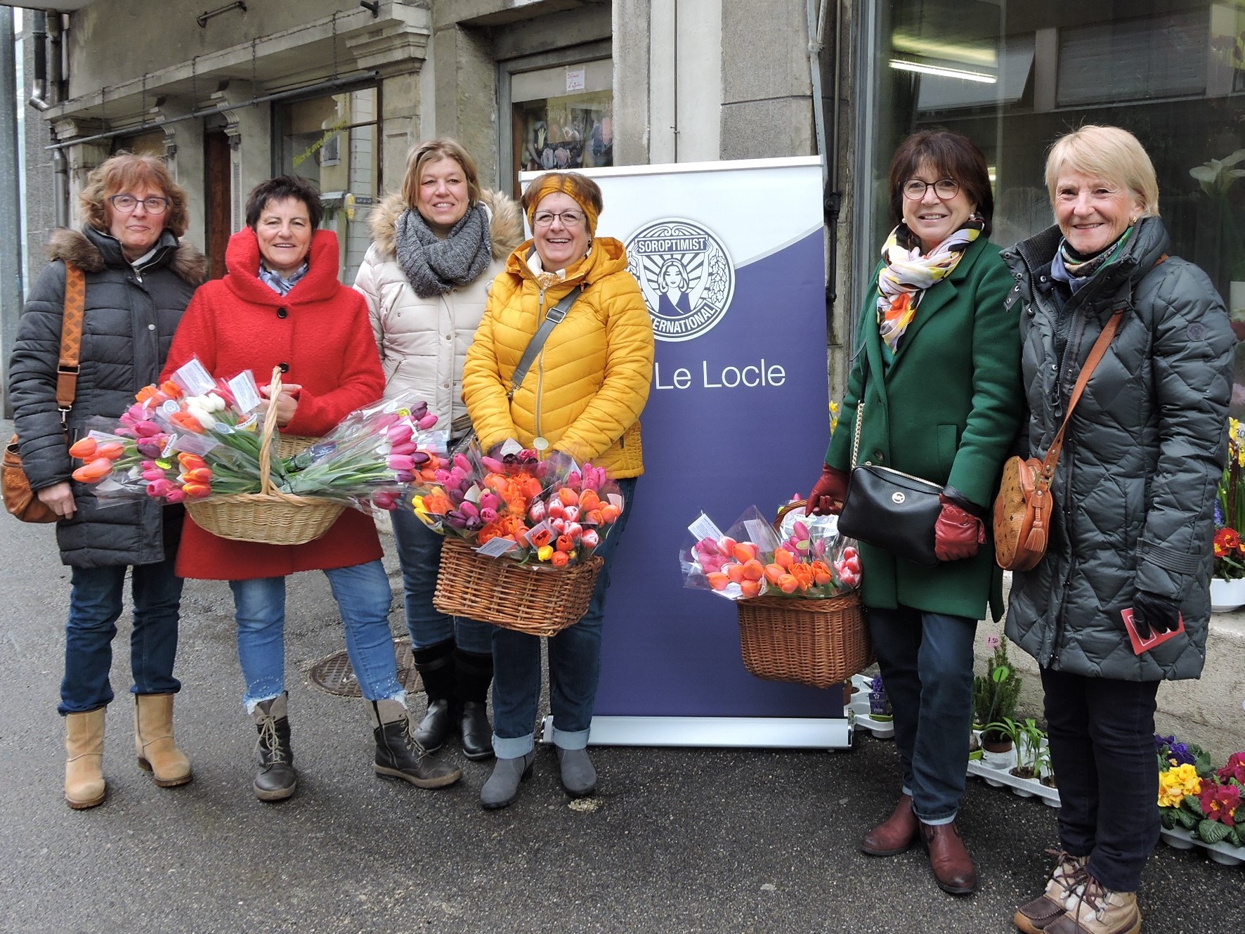 Heute am 7. März 2020 verkauften engagierte Frauen vom Soroptimist Club Brig vor dem Geschäft der Soroptimistin Maria Pfammatter auf dem Stadtplatz in Brig wiederum fleissig Tulpen zugunsten des Unionsprojektes „Medica Mondiale“. Von 9 bis gegen 14 Uhr verkauften wir an die 80 Bund Tulpen und 20 Töpfchen mit Tulpensetzlingen, verteilten Flyer und präsentierten den Club.