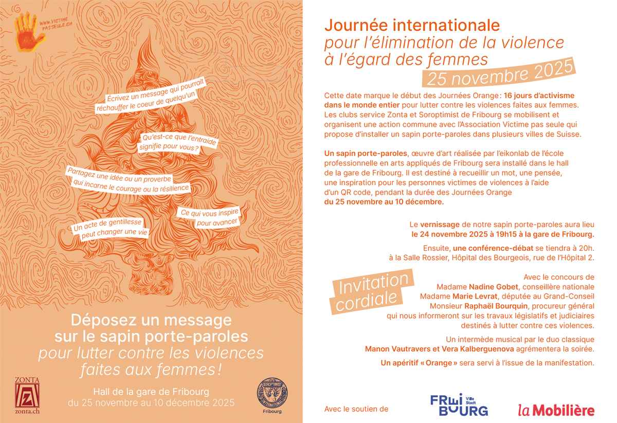 - 25.11.25 Auftaktveranstaltung um 17:30 Uhr auf dem Fronwagplatz : Sitzbank Einweihung „Gewalt hat keinen Platz“ danach Film und Apero zum Thema Gewalt gegen beinträchtigte Frauen