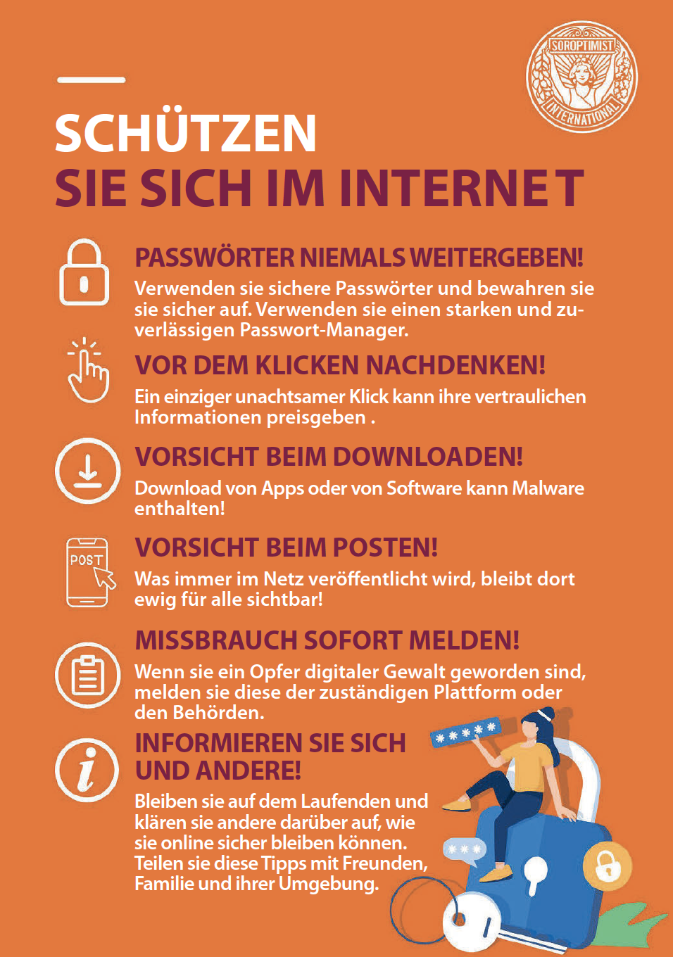 Geplante „Orange Days Aktivitäten“ der Schweizer Soroptimist Clubs.